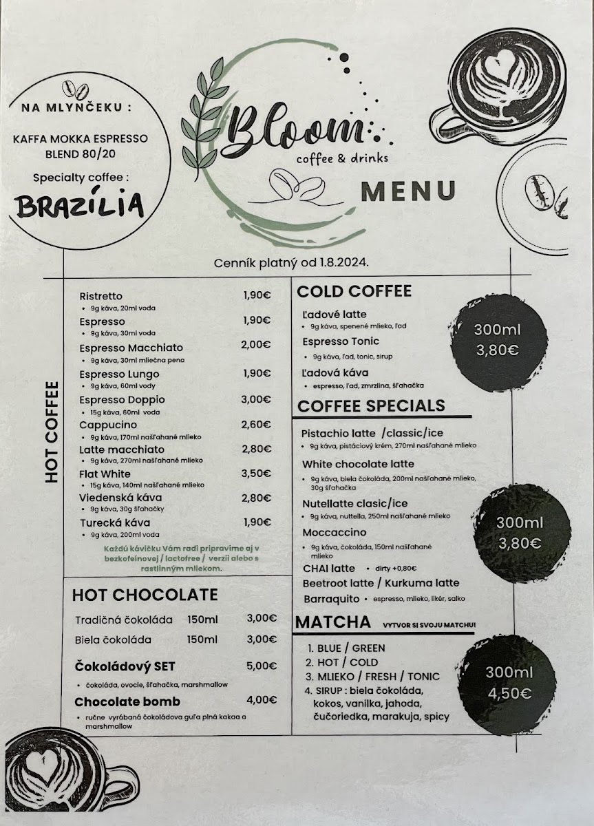 Bloom coffee & drinks Menu